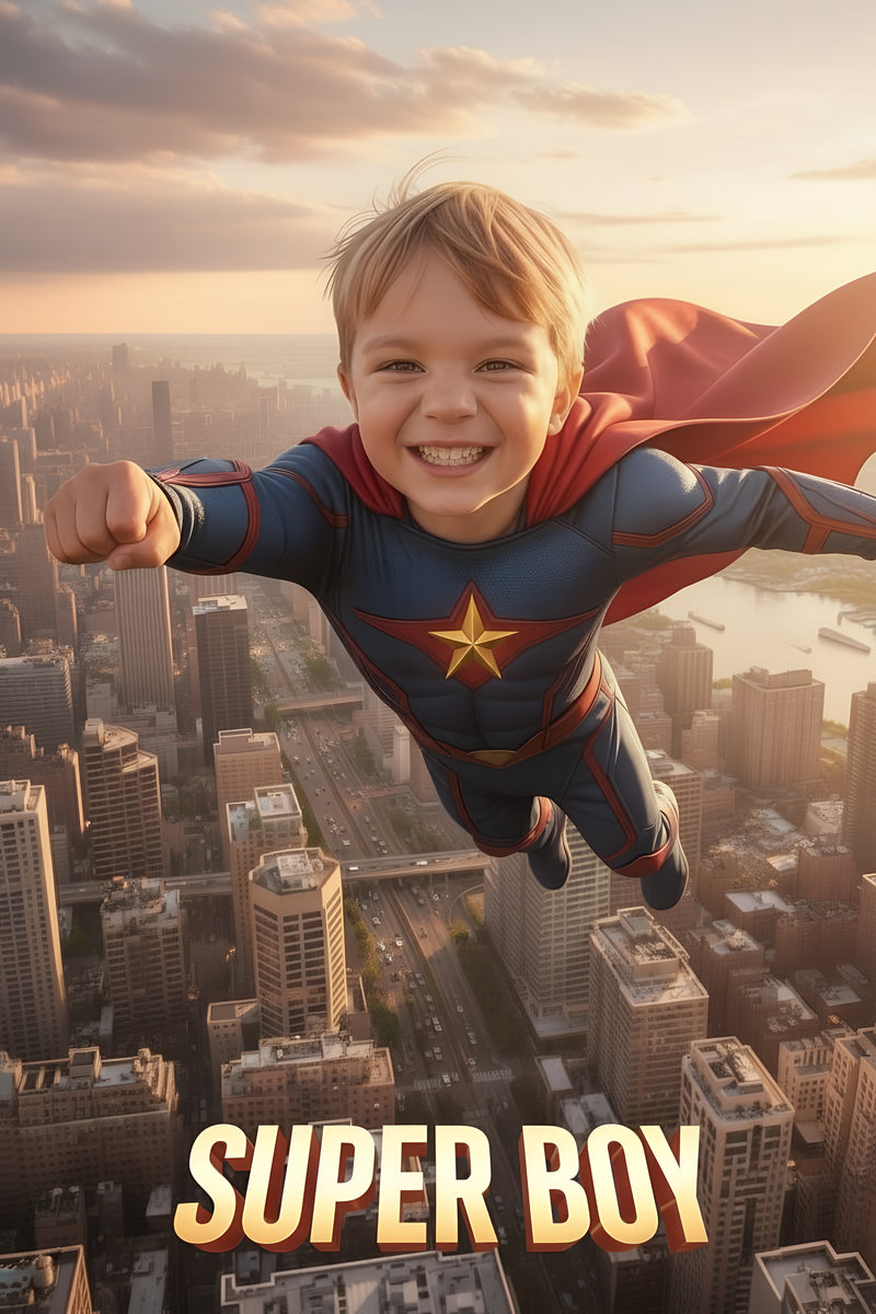 Dodaj zdjęcie na którym dobrze widać twarz chłopca i nie ma na nim innych osób. Zamień go w superbohatera. Zamów Obraz na Płótnie lub Plakat albo Wydruk na szkle