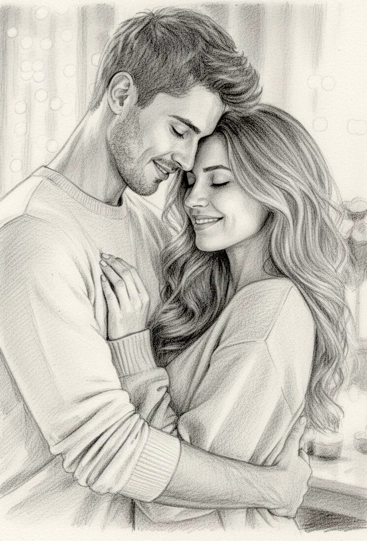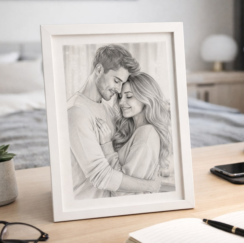 Szkic ze zdjęcia - obraz na płótnie. Prezent dla niej i dla niego